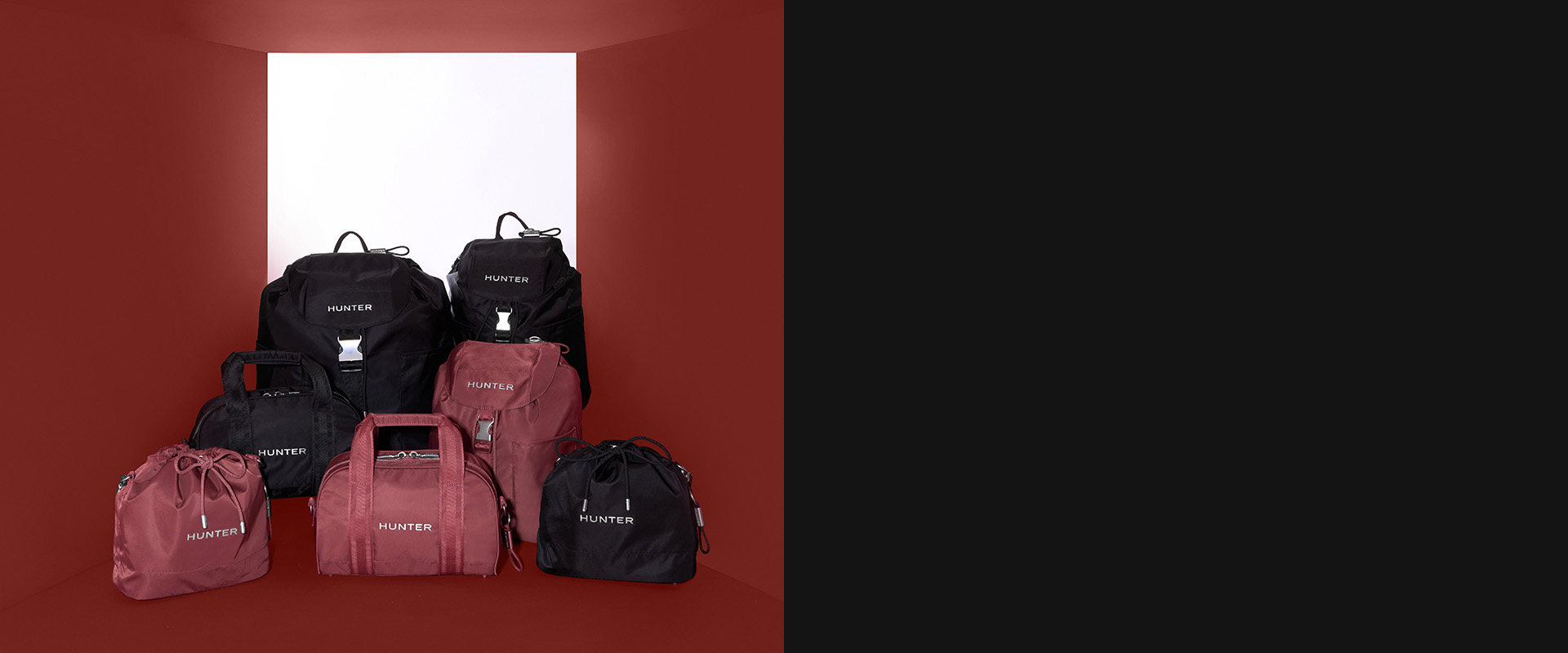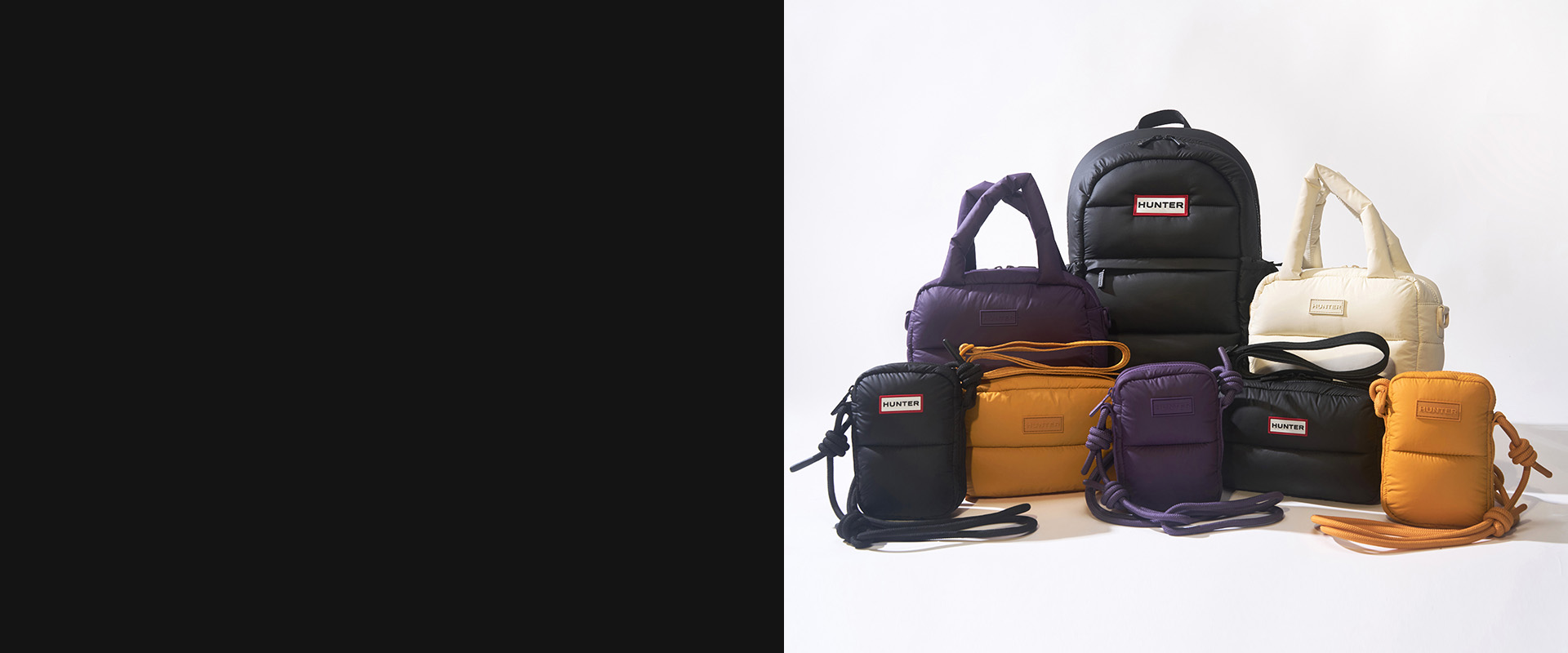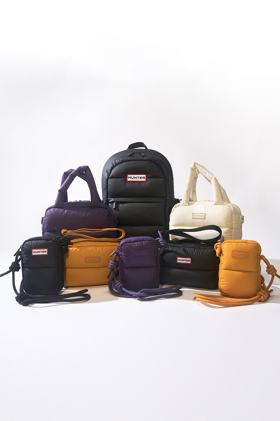 The Premium Nylon Bag Series features a shiny, water-resistant nylon fabric paired with the metal Hunter logo to create a more sophisticated and elevated nylon bag.
